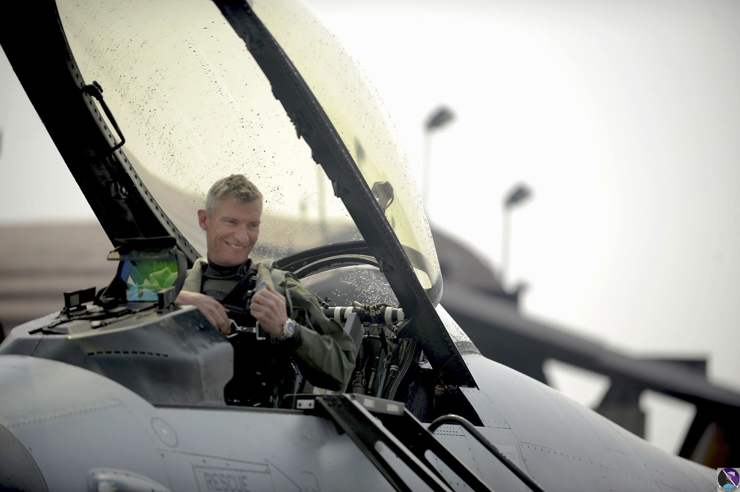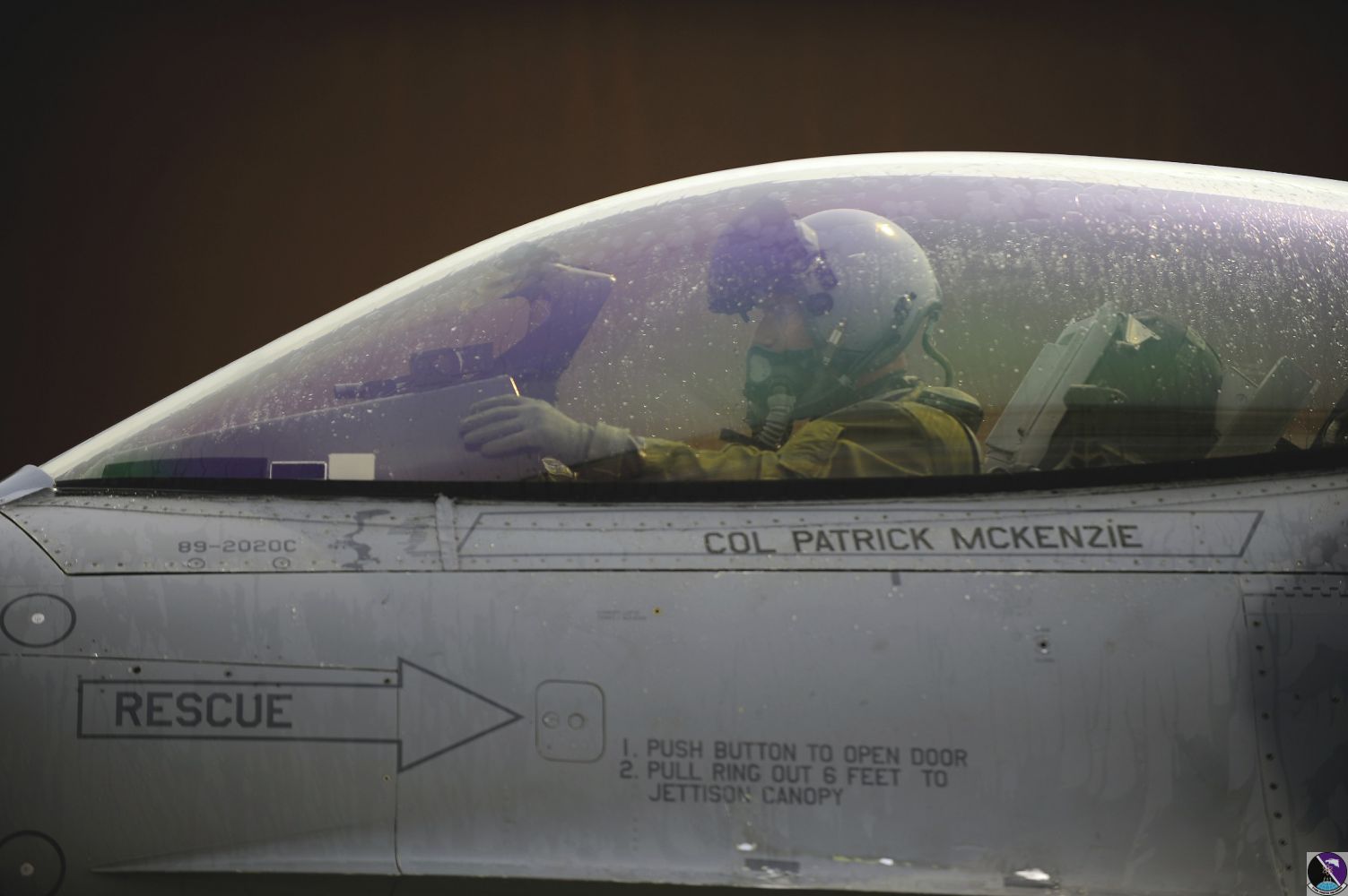 • Col. Patrick McKenzie, 51st Fighter Wing commander, prepares to exit his F-16 Fighting Falcon after reaching 3,000 flying hours at Osan Air Base, Republic of Korea, March 28, 2013. Only a little more than 200 F-16 pilots worldwide are documented as sharing this 3,000-hour achievement. (U.S. Air Force photo/Staff Sgt. Sara Csurilla)