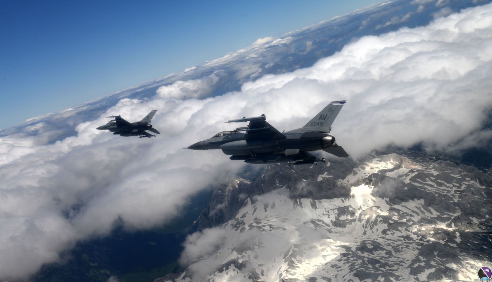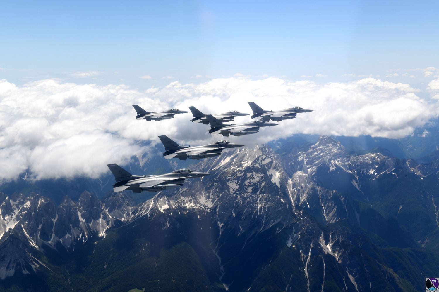 • F-16 Fighting Falcons from the 31st Fighter Wing at Aviano Air Base, Italy, fly over Slovenia, June 1, 2020. The 31st FW is the only U.S. fighter wing south of the Alps and this strategic location makes the wing critical to operations in NATO's southern region. (U.S. Air Force photo by Senior Airman Caleb House)
